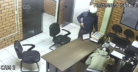 indivíduos chegaram até o local em uma motocicleta e anunciaram o assalto. Um