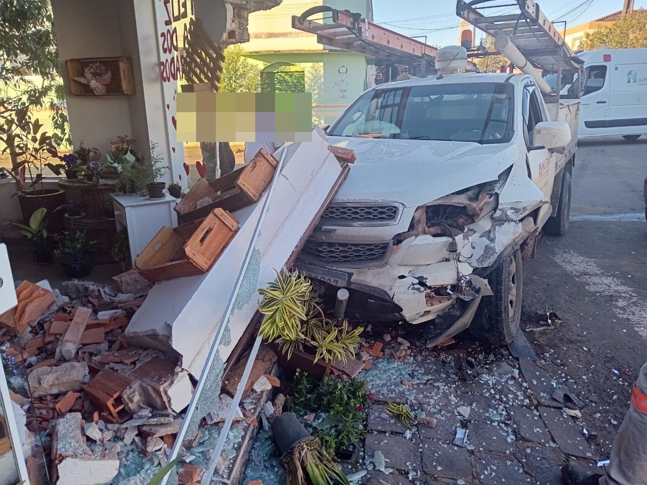 Após colidir no Corsa , a caminhonete atingiu a frente de uma loja, causando grandes danos materiais.
