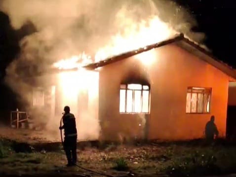 Uma residência abandonada foi consumida pelas chamas na noite desta quinta-feira (27-06) na Rua Alexandre Skrovonski. O incêndio teria começado na parte onde fica a sala e posteriormente se alastrou para outros cômodos.